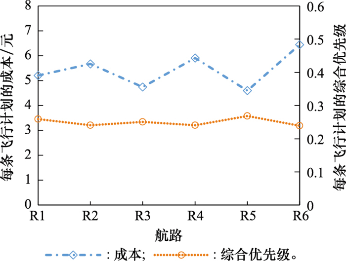 | 图4 每条飞行计划的成本和综合优先级变动 |