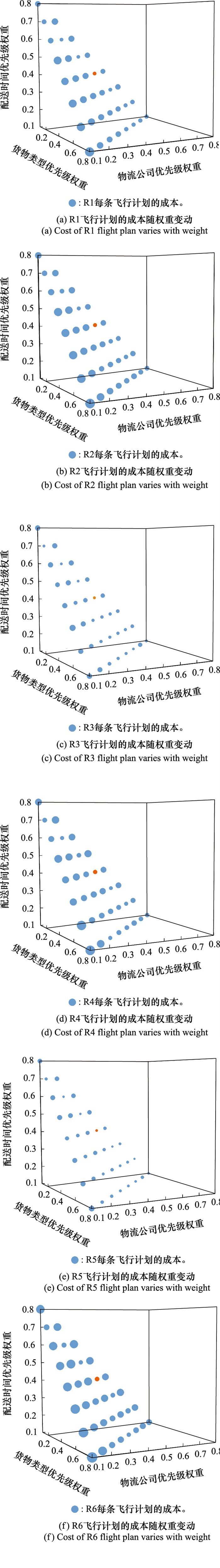 | 图6 不同权重对每条飞行计划的成本影响 |