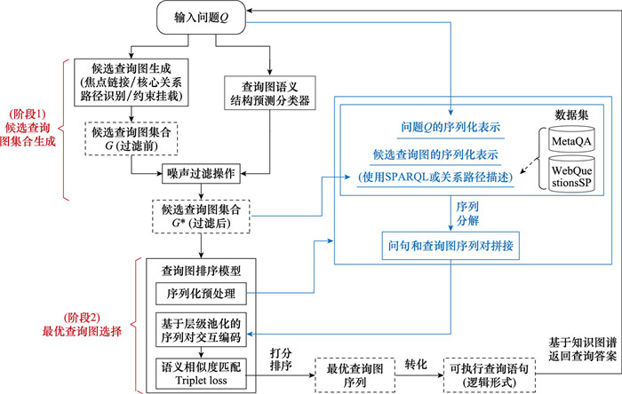 在处理知识图谱复杂问答任务时, 传统的查询图语义解析方法需要在排序阶段对大量结构复杂的候选查询图进行语义编码, 用以获得各自多维特征表示。然而, 在编码过程中采用的全局最大或平均池化操作通常存在对代表性特征提取能力不足的问题。针对以上问题, 提出一种基于层级池化序列匹配的最优查询图选择方法。在实现候选查询图的交互建模过程中, 同时采用层级池化滑动窗口技术分层提取问句和查询图序列对的局部显著性特征与全局语义特征, 使得到的特征向量更好地用于候选查询图的语义匹配打分。所提方法在两个流行的复杂问答数据集MetaQA和WebQuestionsSP上开展广泛实验。实验结果表明: 引入层级池化操作能够有效提取复杂查询图序列的代表性语义特征, 增强原有排序模型的交互编码能力, 有助于进一步提升知识图谱复杂问答系统的性能。