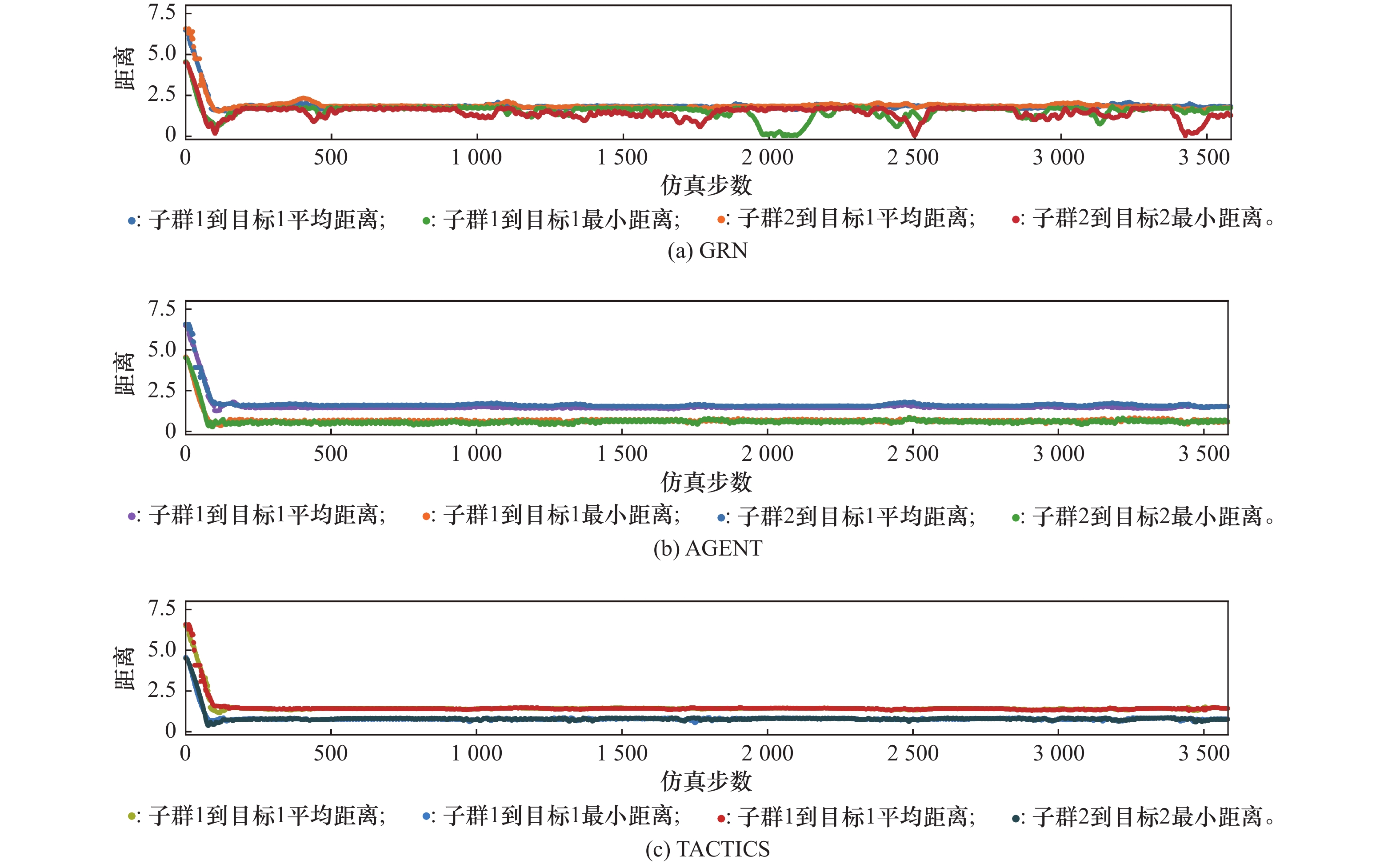 基于无人机分布式集群反制多个动态无人机的任务场景,提出通过基因调控网络和行为设计结合的方法实现无人机集群速度控制。无人机通过基因调控网络模型基于目标位置信息和威胁区位置信息计算适应当前环境的群体形态;考虑无人机在反制目标任务的各项子行为,设计反制任务场景中的无人机分布式集群运动速度控制器,无人机可在群体层面涌现出自适应兵力分配集群反制目标的队形。提出关于任务完成效果与集群运动性能的若干统计指标,并通过仿真对比实验进行了指标分析。指标统计结果显示本文所提方法可以很好地实现无人机分布式集群反制多个动态目标的任务。