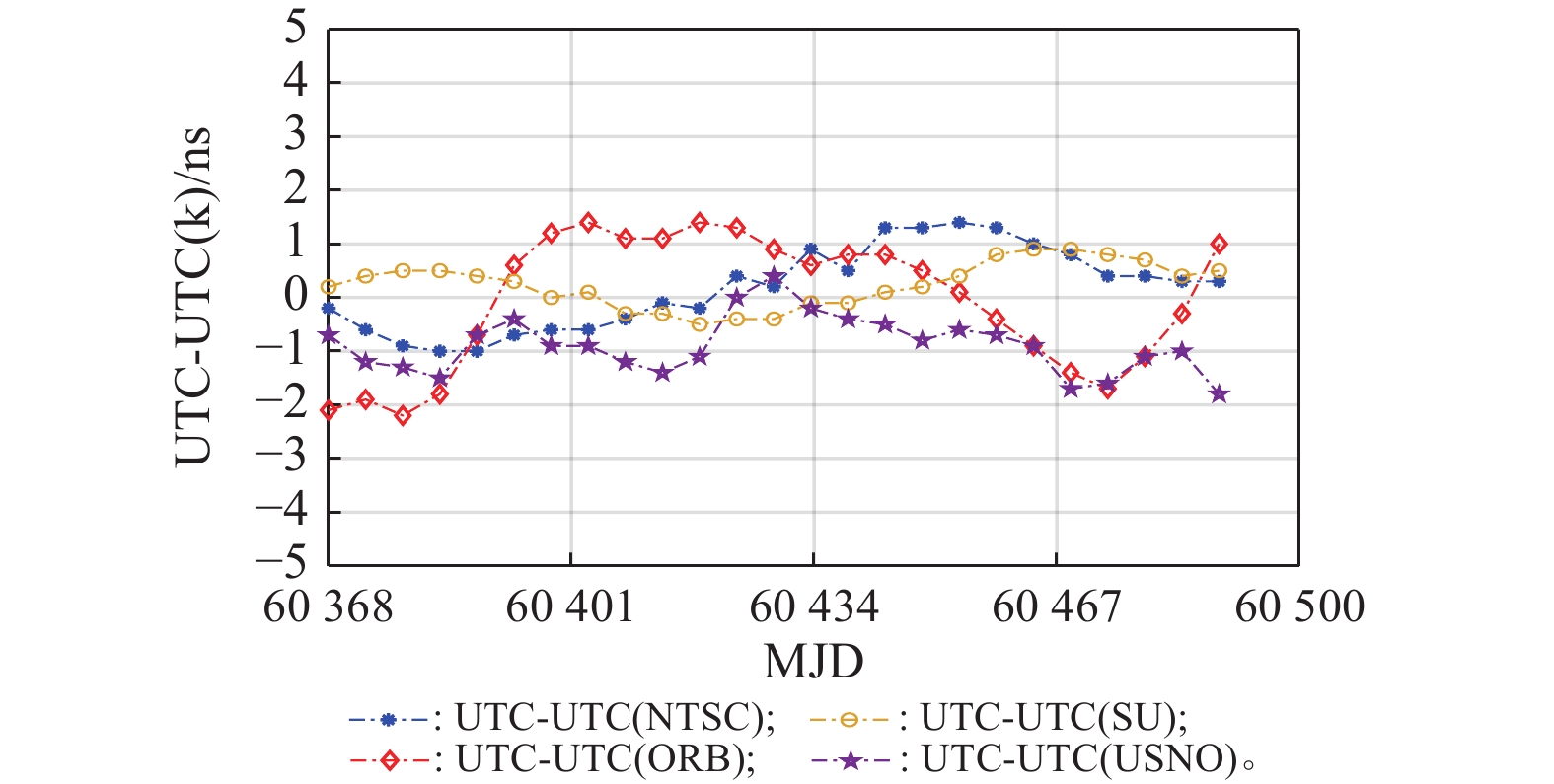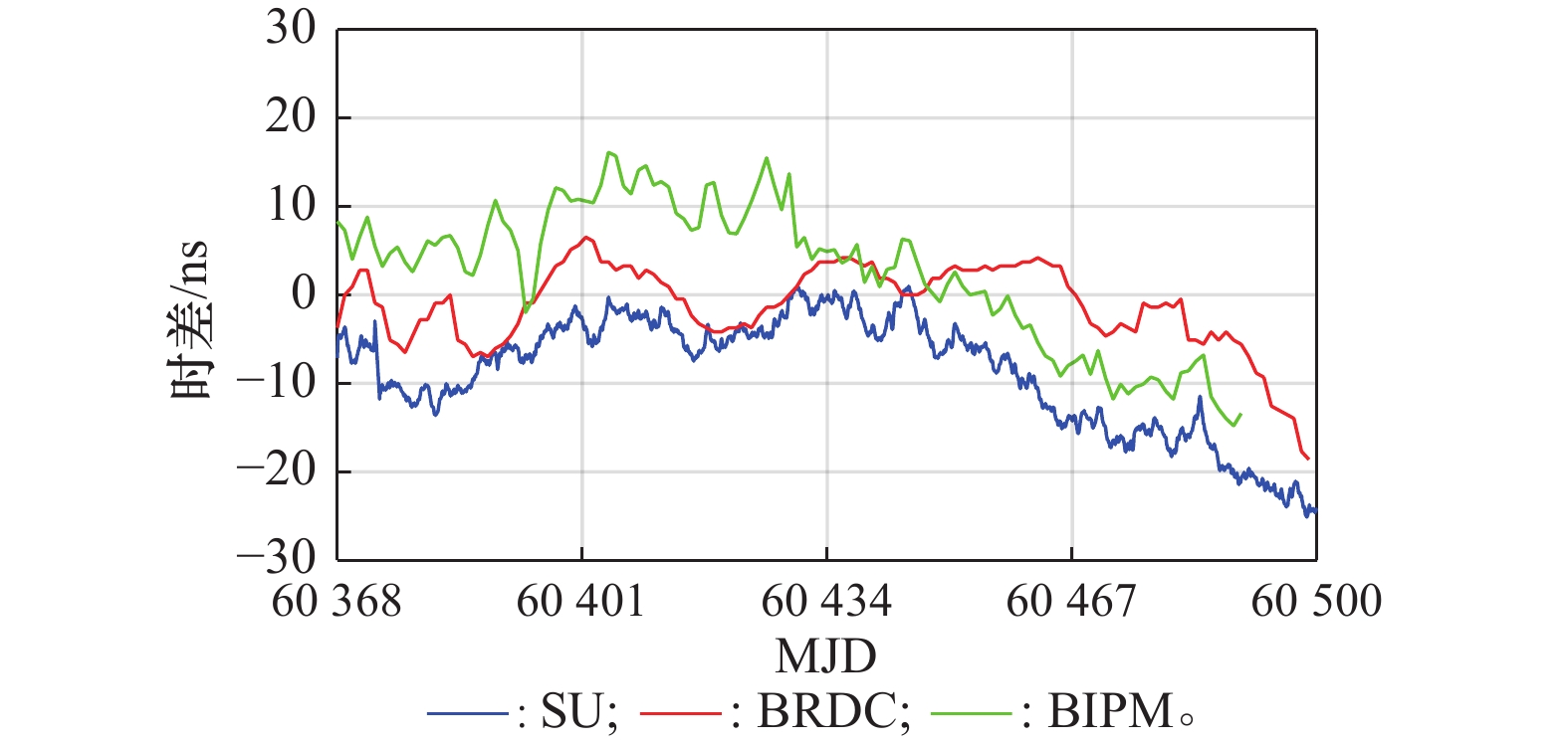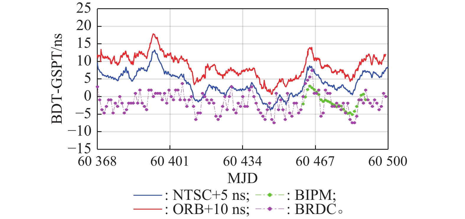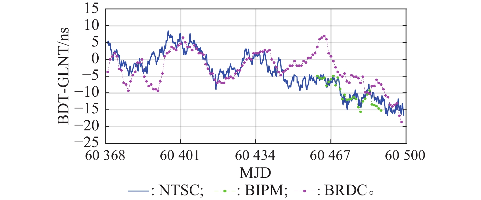 为了使用国际权度局(Bureau International des Poids et Mesures,BIPM)播发的导航系统时间与协调世界时(coordinated universal time,UTC)偏差信息评估全球卫星导航系统(global navigation satellite system, GNSS)间时差监测结果,本文利用各GNSS播发的系统时间的溯源偏差数据和以UTC为本地物理实现的GNSS监测数据,基于单站时差监测技术对比分析系统间时差监测结果与系统播发的系统间时差信息、各系统时间与UTC之间的偏差信息,实现GNSS系统间时差的实时监测与评估。对比BIPM播发的GNSS时间与UTC偏差信息可见,GNSS电文播发的系统时间偏差与BIPM发布结果之间的最大偏差低于6 ns,残差标准差低于3 ns,GNSS电文播发的UTC偏差与BIPM发布结果之间的偏差保持在6 ns以内,残差标准差优于2.5 ns,满足了大部分用户对导航系统互操作需求。