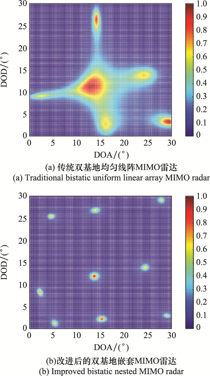关键词: 冗余虚拟阵元, 嵌套阵列, 双基地多输入多输出雷达, 角度联合估计